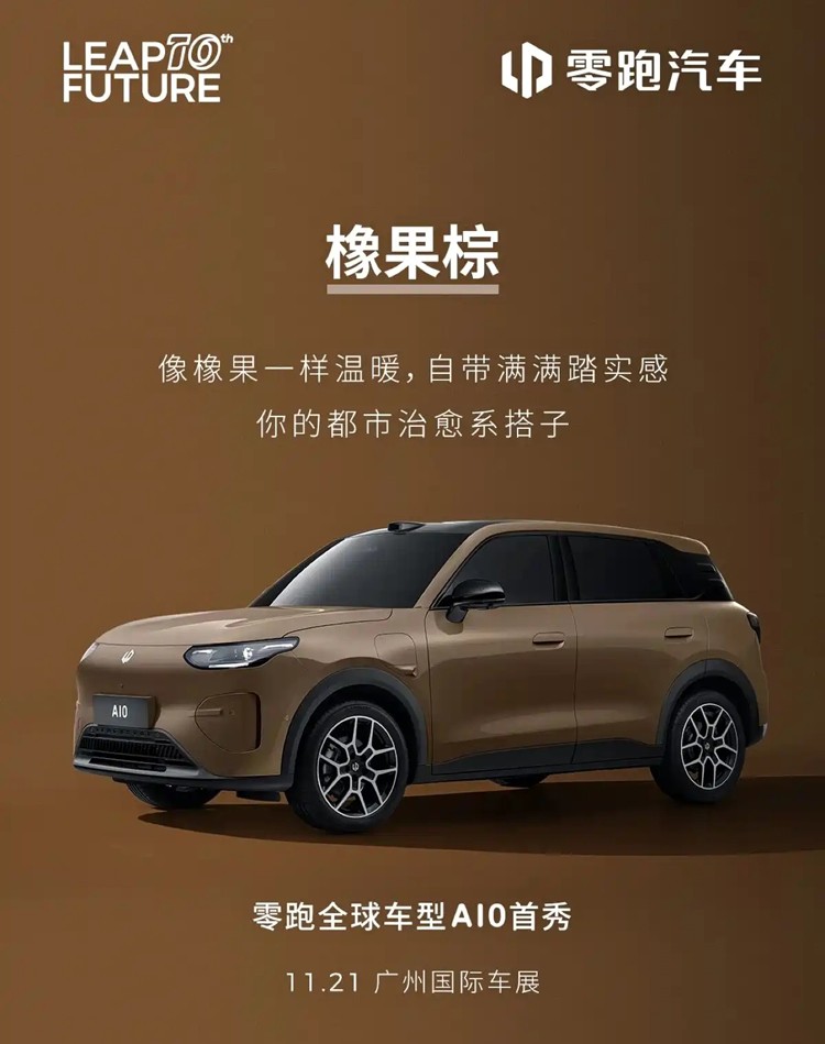 零跑A10时尚中带着些小硬朗,有着明显年轻化的特征,通过官方发布的海苔绿、橡果棕两款全新配色,也能进一步感受这种年轻化风格。