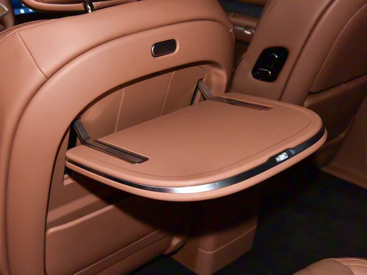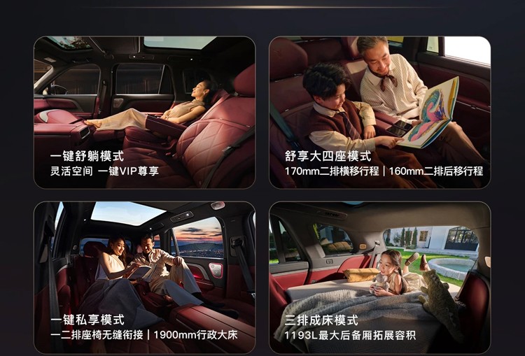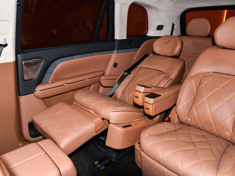 岚图泰山也是2+2+2的6座布局,二排配备AI云舒零重力座椅,支持主动侧翼支撑、一键零重力模式、26点座椅按摩功能,扶手还内嵌3.5英寸触摸屏,可以用来调节座椅、空调、多媒体等等。此外,像电动遮阳帘、小桌板、吸顶屏、13L的大容量智能能暖箱、32扬声器全景声音响系统(包括8个头枕音响、功放功率达2300W)等都没有缺席。