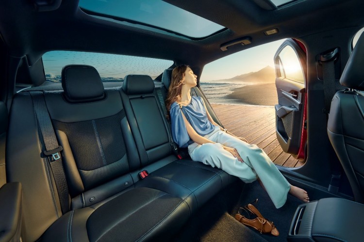车身侧面,新蒙迪欧继续使用溜背造型设计,整体车身线条流畅灵动。新车使用隐藏式门把手,降低风阻系数。车身尺寸方面,新车的长宽高分别为4935/1875/1500mm,轴距为2945mm,打造出二排近1米的"大五座"腿部空间,配合0.94㎡超大全景天窗、丹麦B&O音响与吸入式座椅通风加热系统,营造出移动的"豪华大平层"。