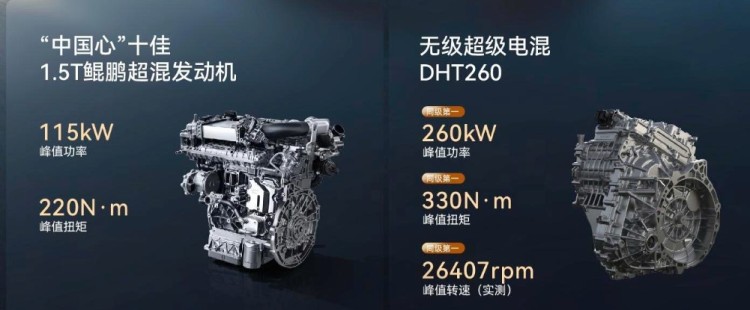 动力这块,风云T9L用上了鲲鹏超能电混CDM6.0系统。1.5T混动专用发动机,热效率45.79%,拿过“中国心”十佳。配上DHT260混动变速箱,系统综合功率550kW,零百加速5秒级。一台家用SUV做到这个加速,日常使用完全是过剩的。但过剩的好处是,高速超车、匝道汇入,油门踩下去那一下,心里特别有底。