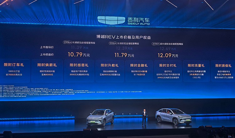 吉利博越十周年之际,家族又迎来新成员—博越REV,新车此次推出3款车型,售价11.39-12.69万元,上市惊喜价10.79-12.09万元。吉利博越REV定位紧凑SUV,采用1.5L增程动力,拥有最大375km的CLTC纯电续航以及1525km的综合续航。