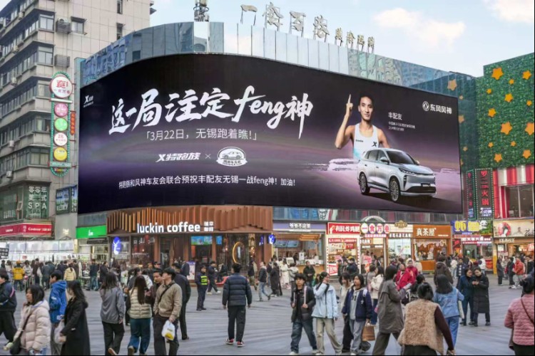 与此同时,东风风神车友会与特步特跑族实现深度跨界联动,无锡马拉松赛场外,联名户外广告为夺冠热门选手丰配友加油助威,这是风神与特步两大国货品牌的深度联动,亦是车友会与跑团的双向奔赴,形成线上线下双向引流,共同诠释“国产力量强强联合”的格局。